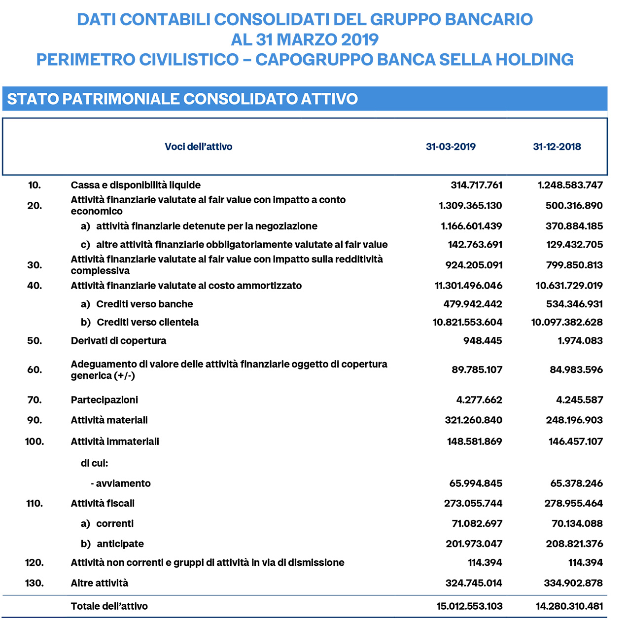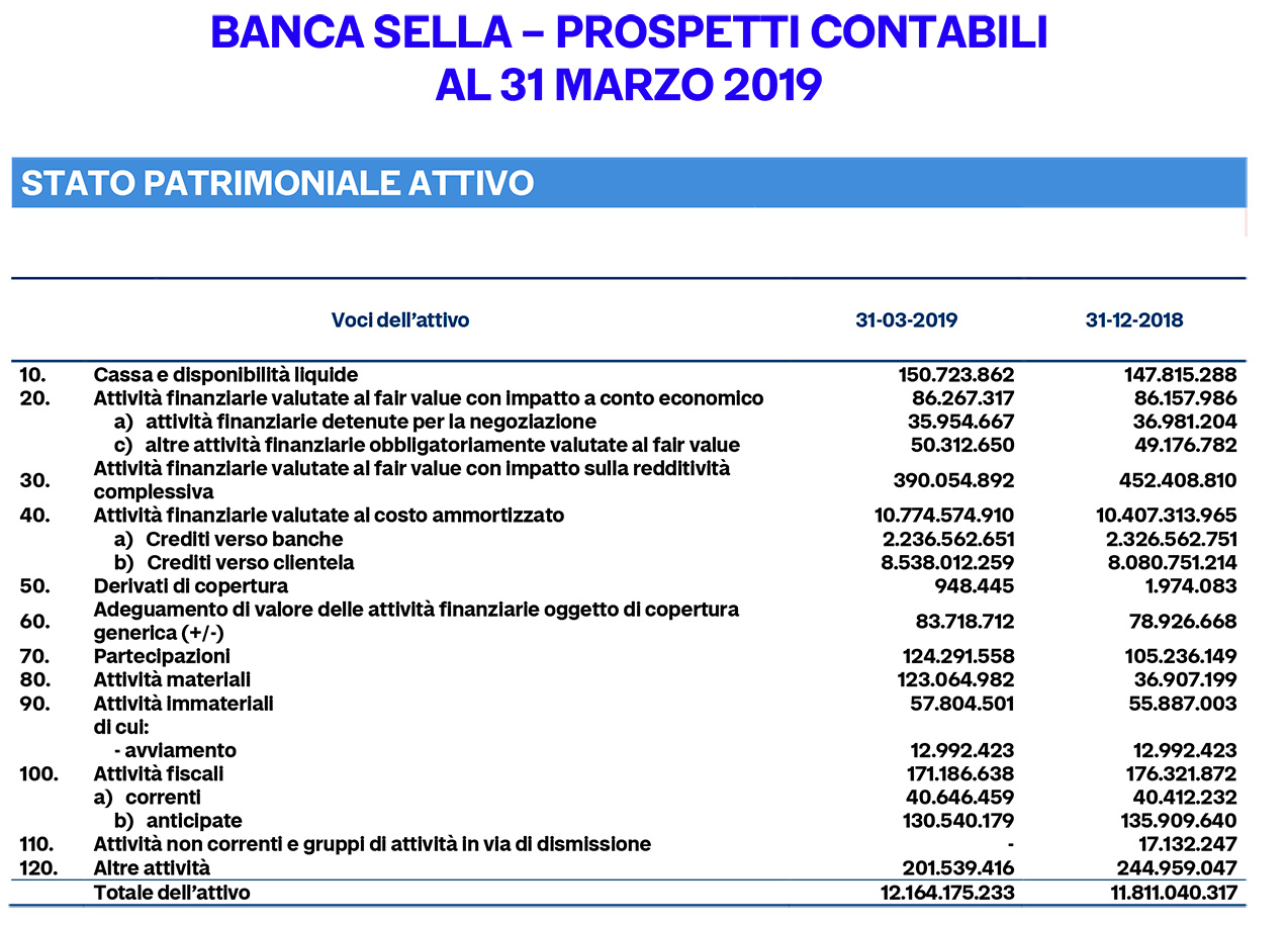 Banca Sella, positivi i risultati del primo trimestre 2019: crescono raccolta e impieghi, confermata l'elevata solidità