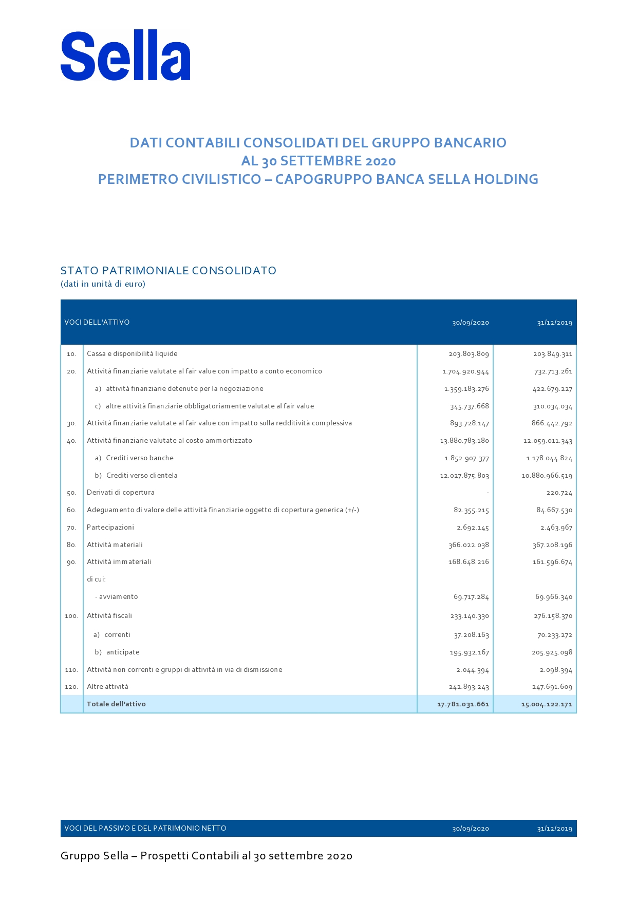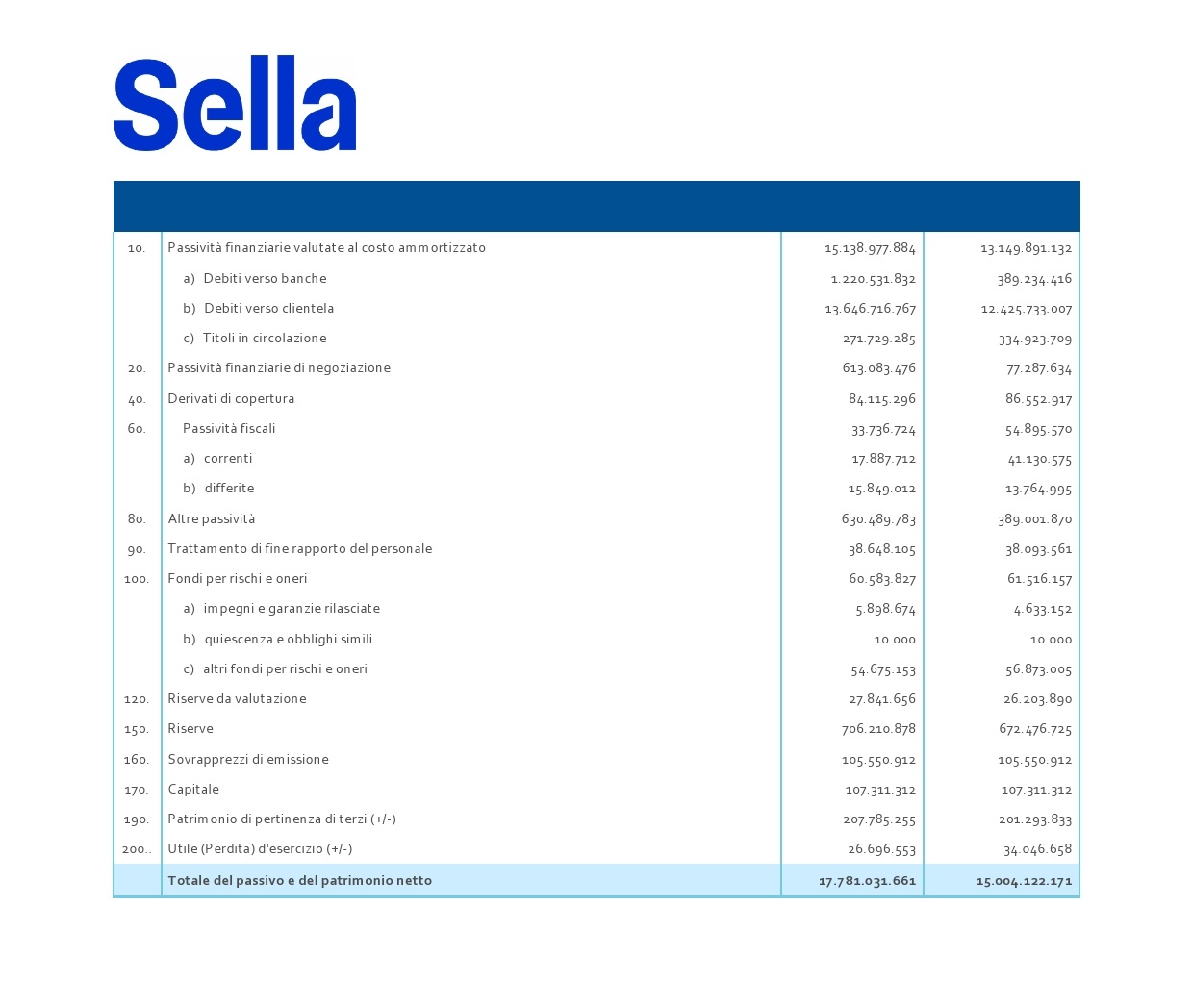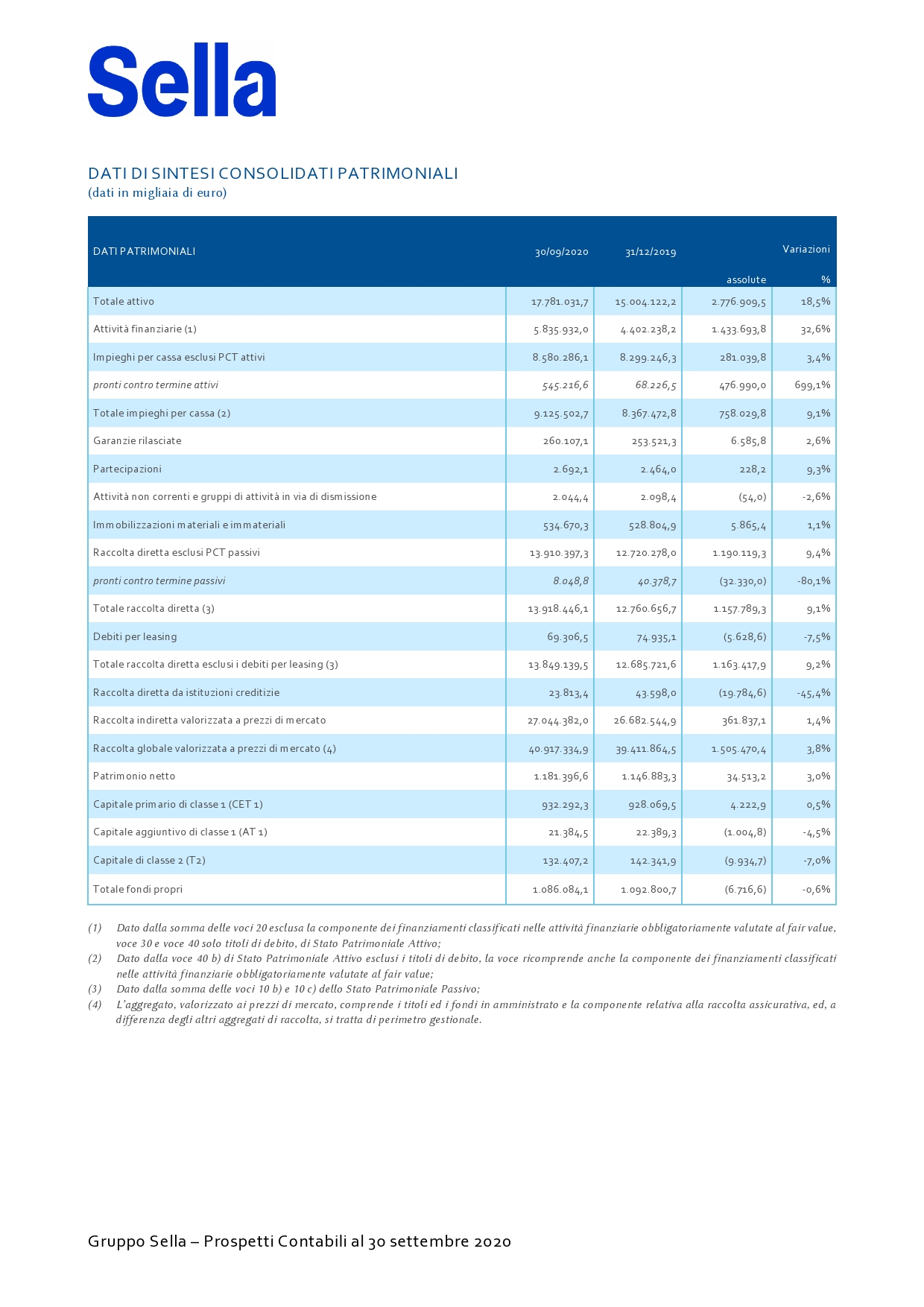 Il buon andamento della banca si inserisce nel quadro più generale dei risultati positivi del gruppo Sella. I risultati consolidati al 30 settembre 2020 approvati dal Consiglio d'amministrazione di Banca Sella Holding, infatti, si sono chiusi con un utile di netto di 26,7 milioni di euro, in linea rispetto ai 26,4 milioni di euro dello stesso periodo dell'anno precedente.
