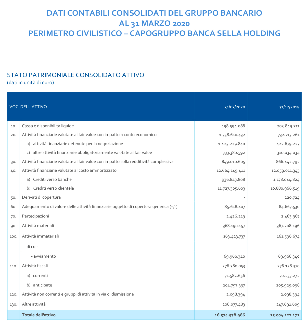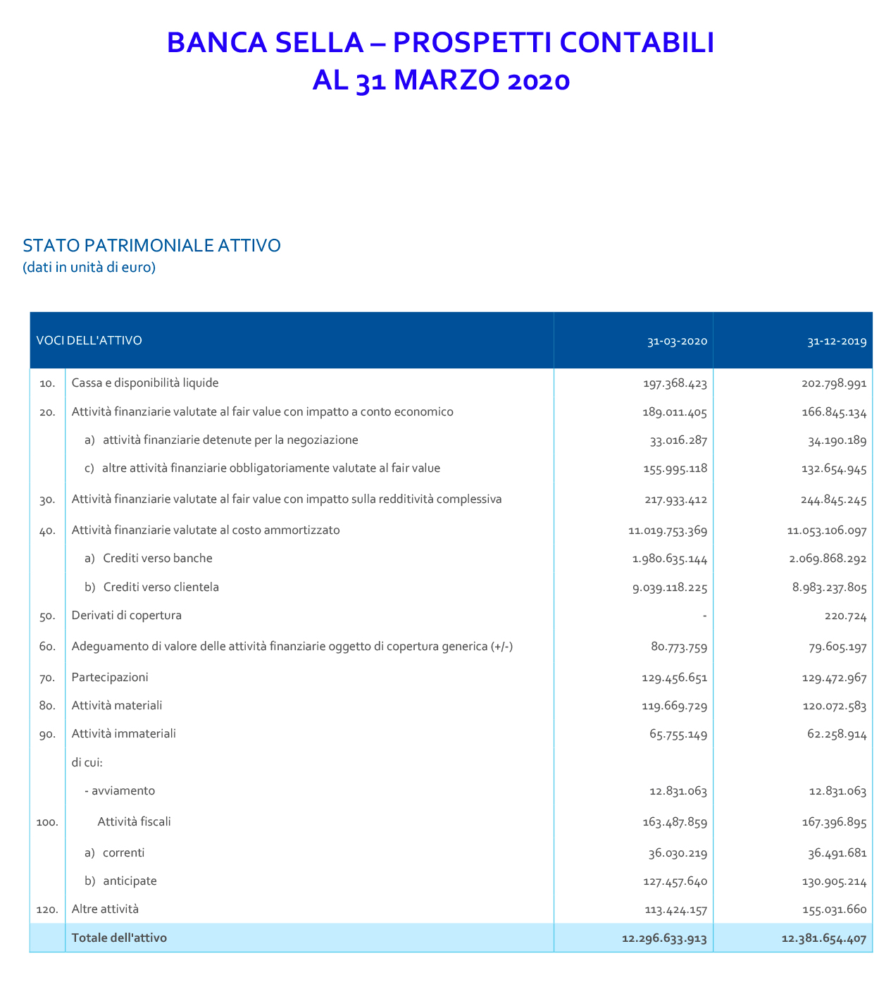 Sella: positivi i risultati del primo trimestre 2020, proseguono le iniziative per sostenere i clienti e l'economia nell'emergenza Coronavirus