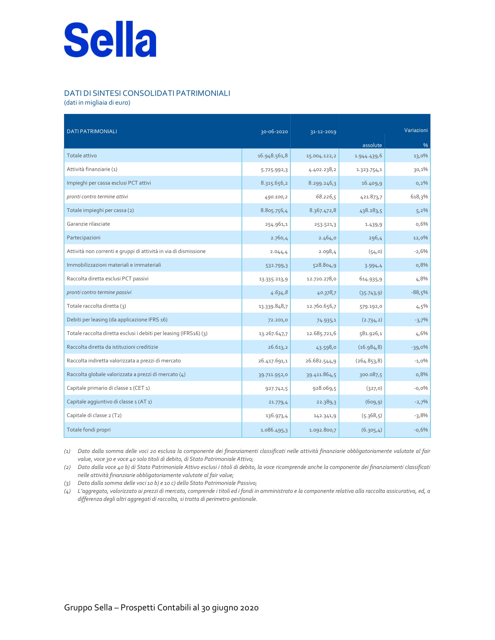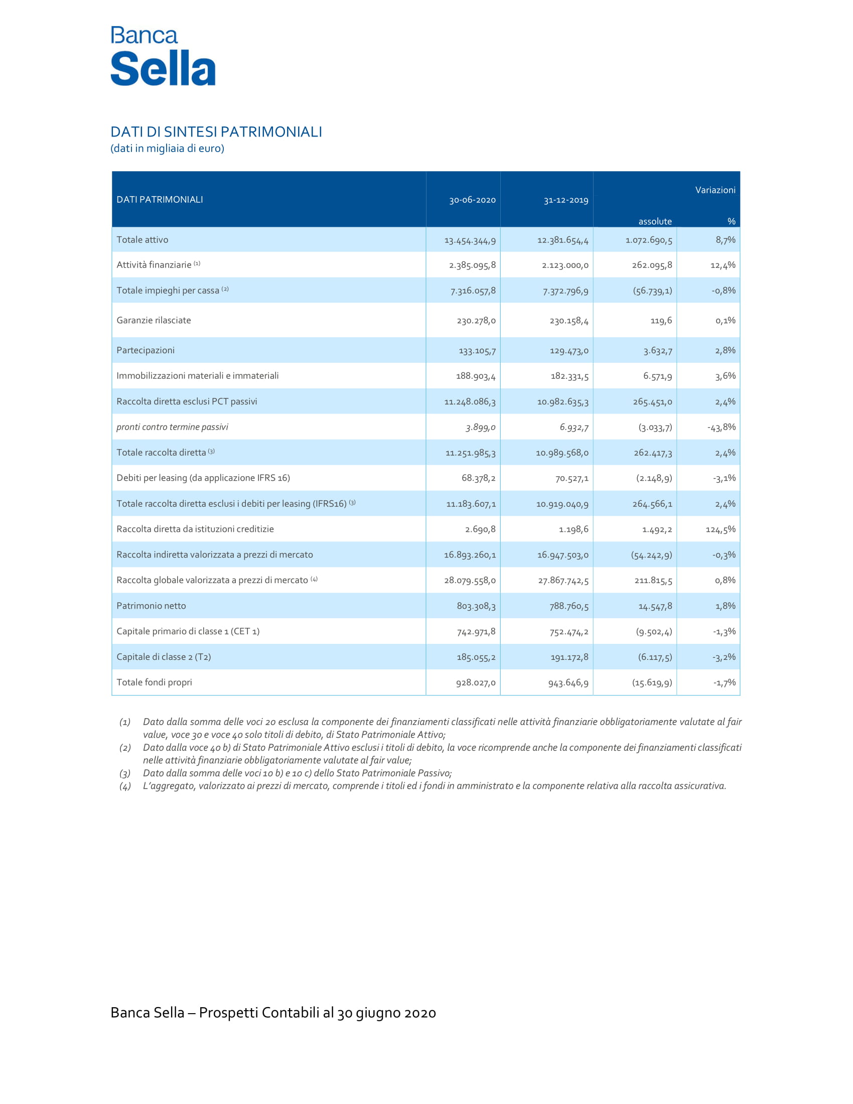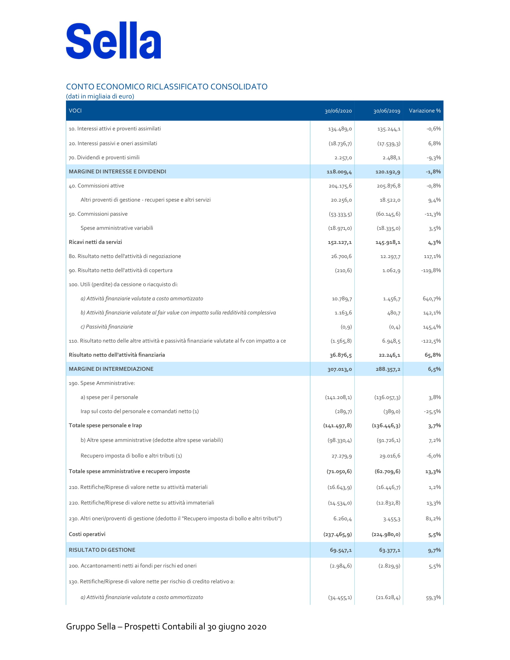 Primo semestre positivo per il gruppo Sella e per Banca Sella, nonostante l'impatto della pandemia Covid-19 e delle misure di contenimento del contagio che hanno caratterizzato la prima metà dell'anno.