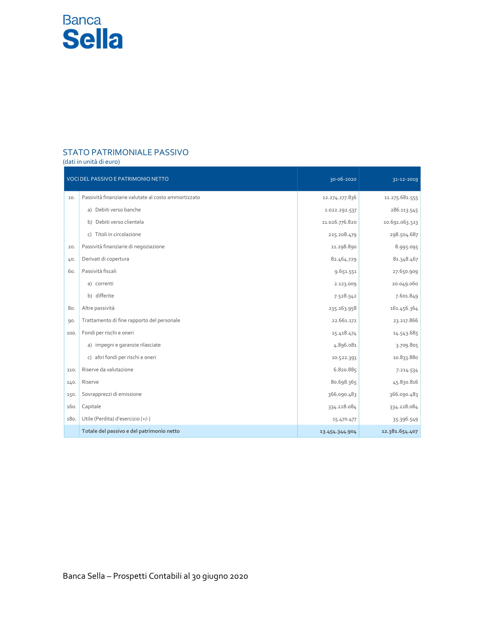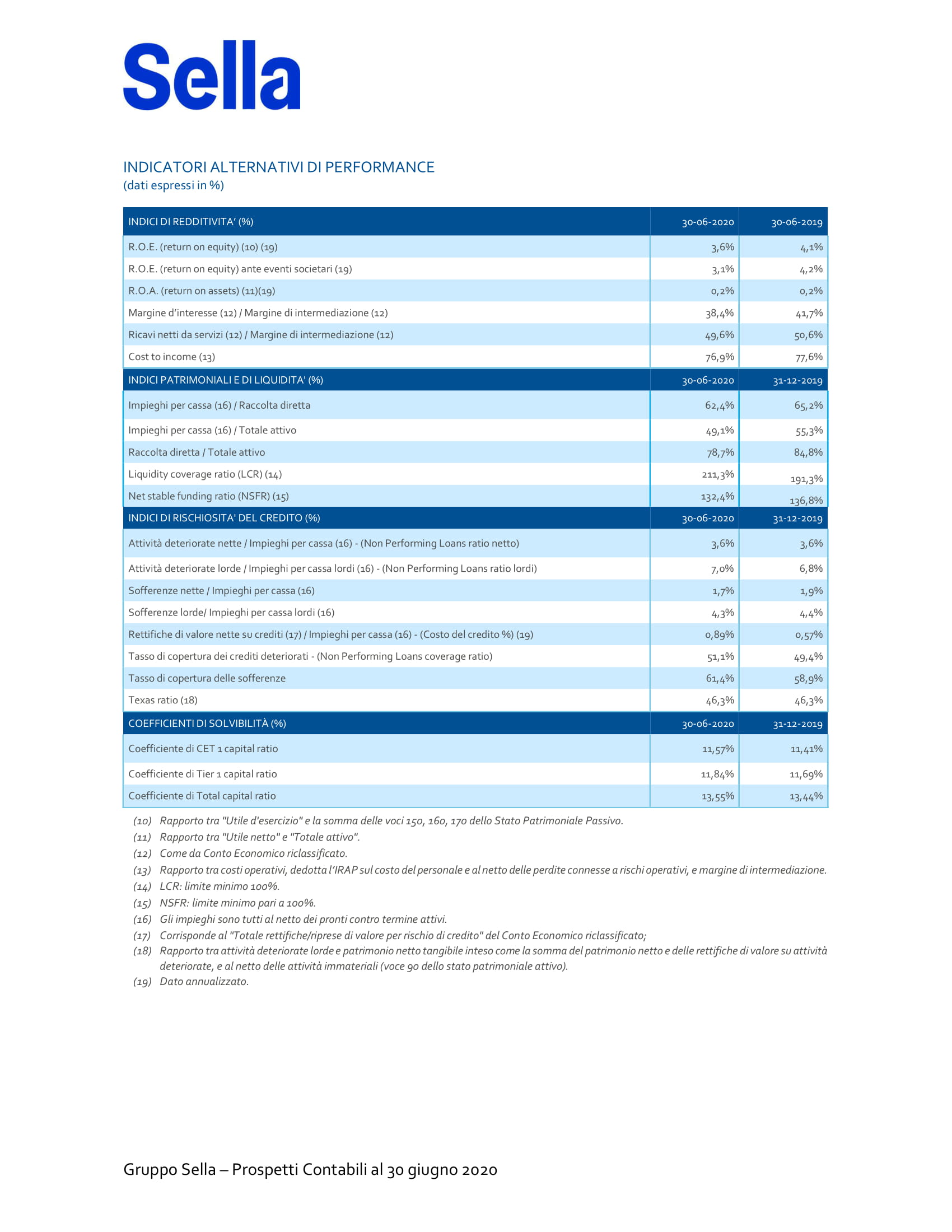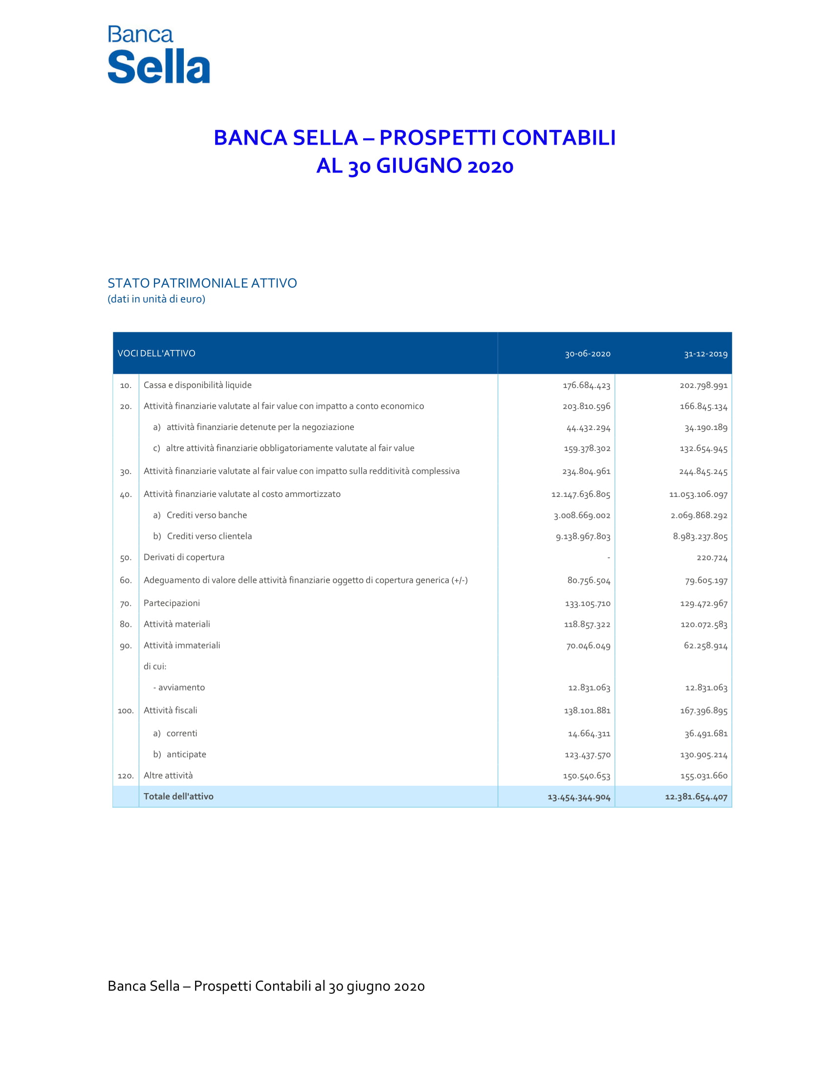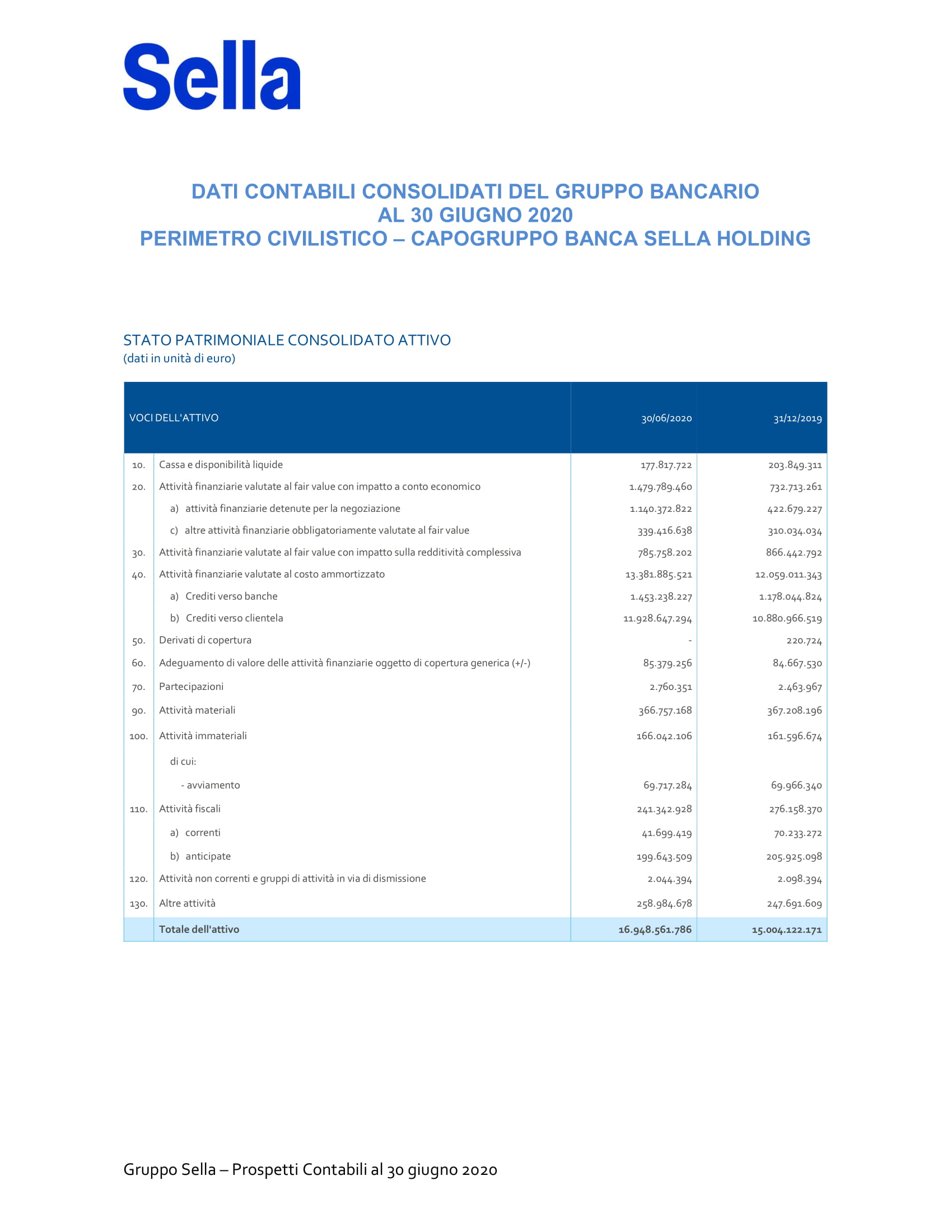 Primo semestre positivo per il gruppo Sella e per Banca Sella, nonostante l'impatto della pandemia Covid-19 e delle misure di contenimento del contagio che hanno caratterizzato la prima metà dell'anno.