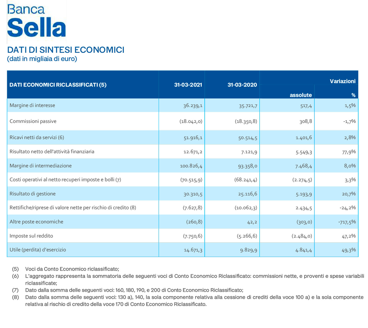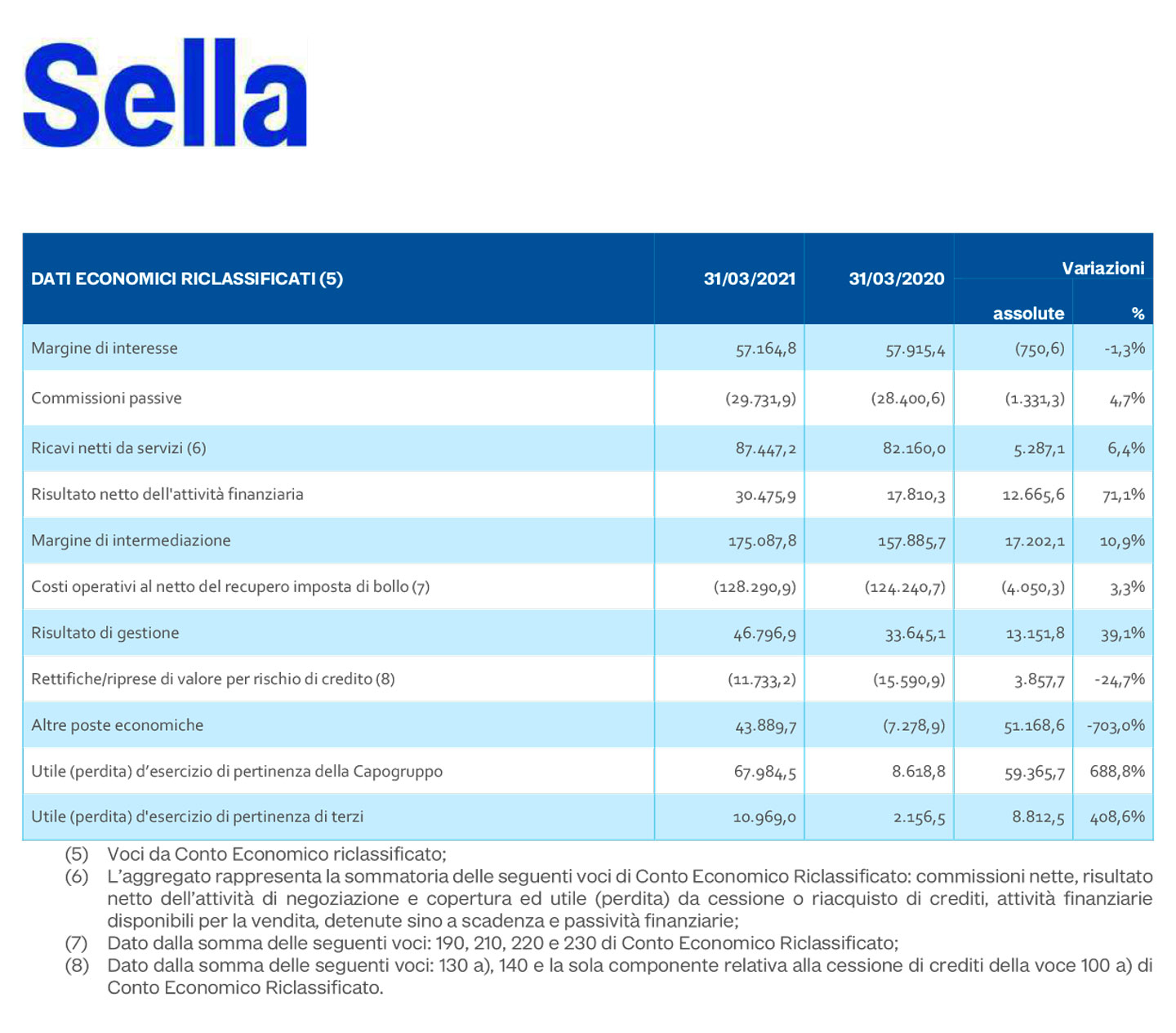 Sella, positivi i risultati del primo trimestre 2021: crescono raccolta, impieghi e utile