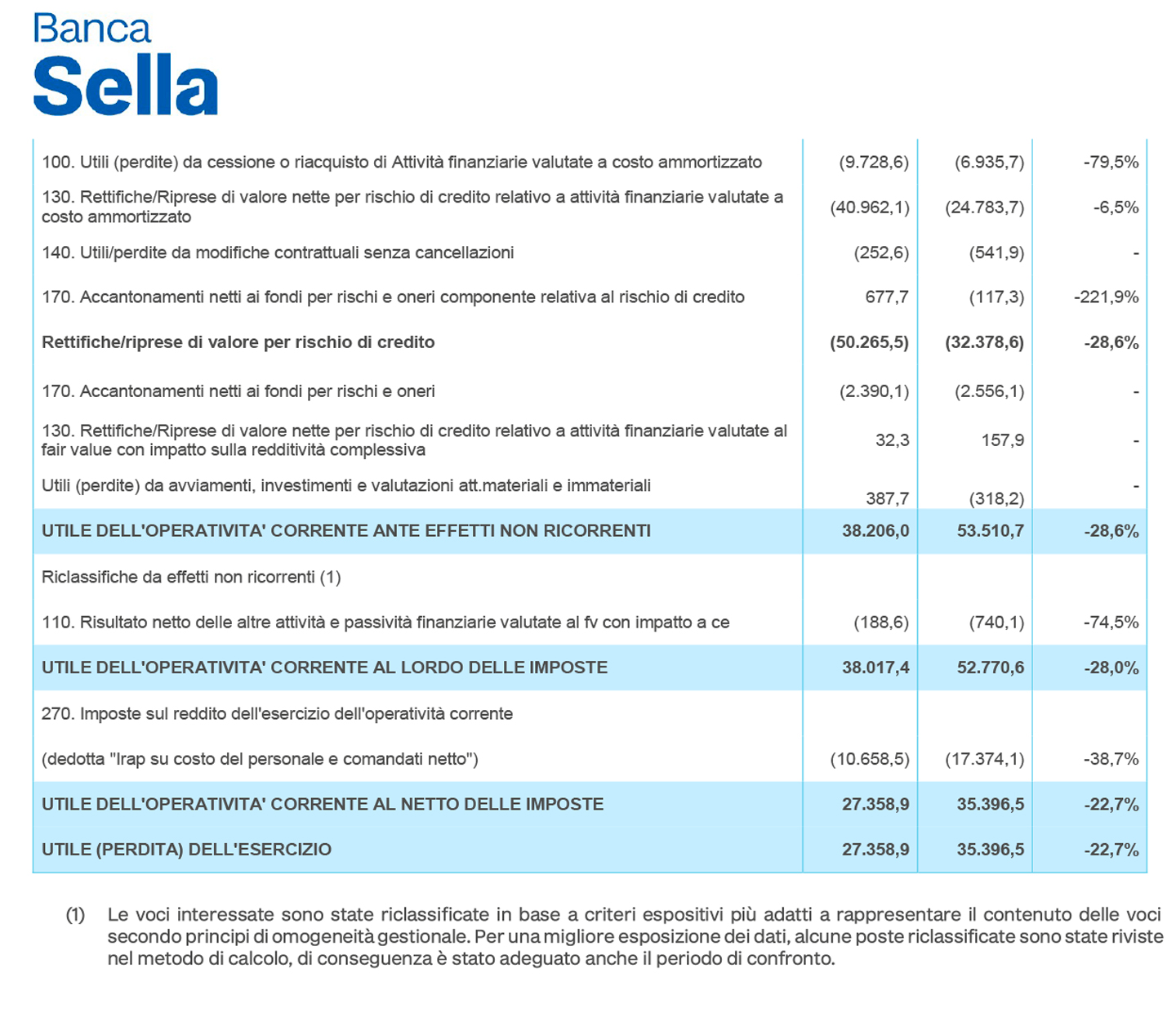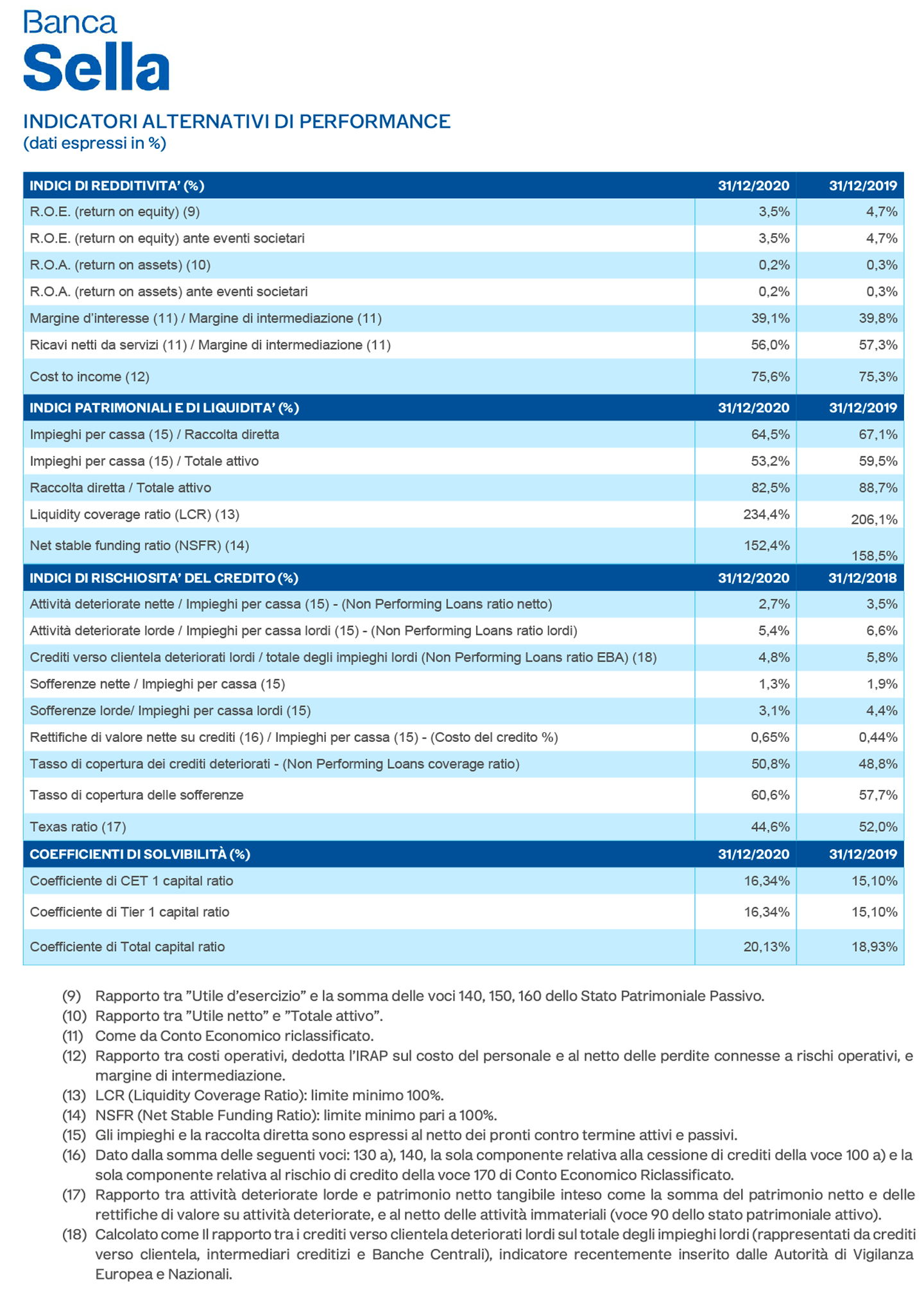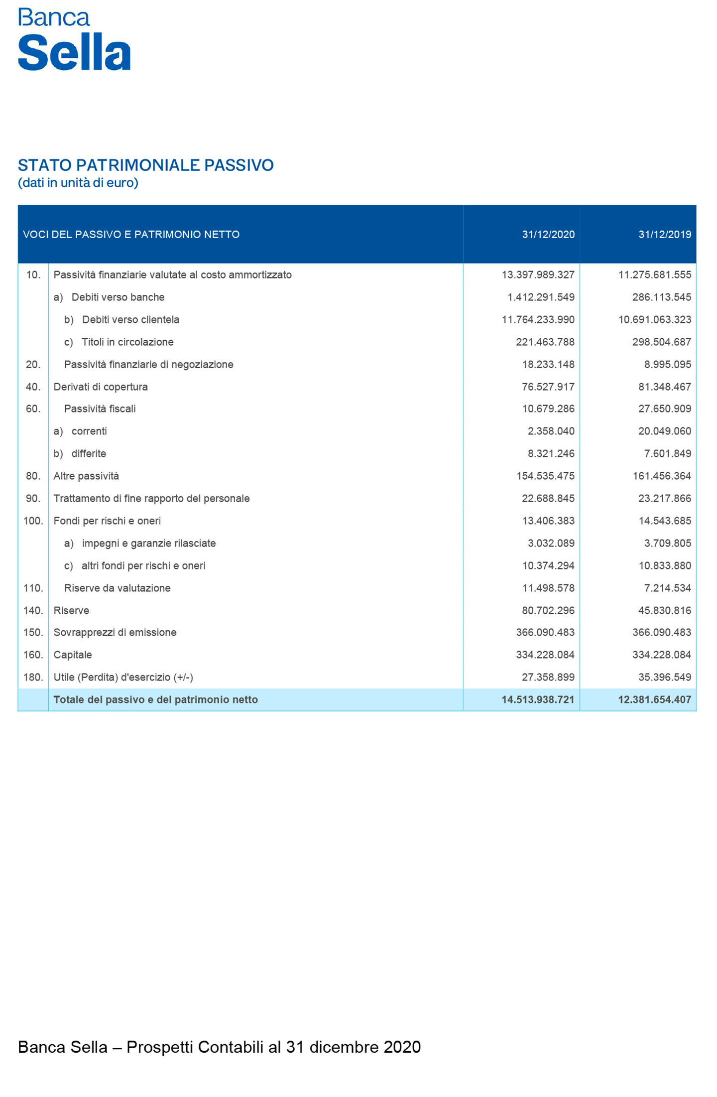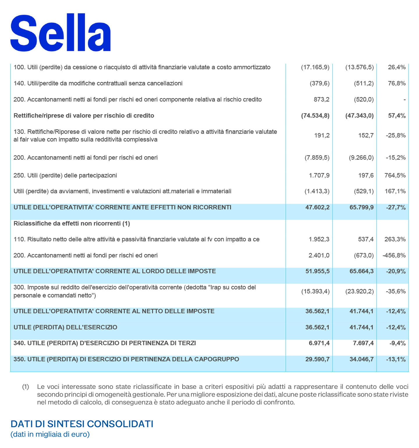 È stato inoltre approvato dal Consiglio d'amministrazione di Banca Sella Holding il progetto di bilancio consolidato al 31 dicembre 2020 del gruppo Sella, che si è chiuso con un utile netto di 29,6 milioni di euro, rispetto ai 34 milioni di euro dell'anno precedente, anche in questo caso principalmente per effetto delle maggiori rettifiche derivanti da una prudente valutazione del rischio di credito, senza le quali l'utile sarebbe stato in crescita.